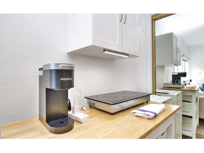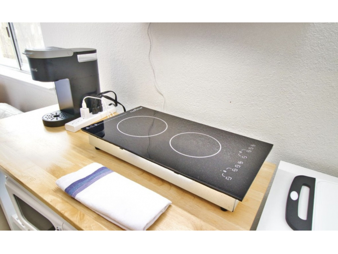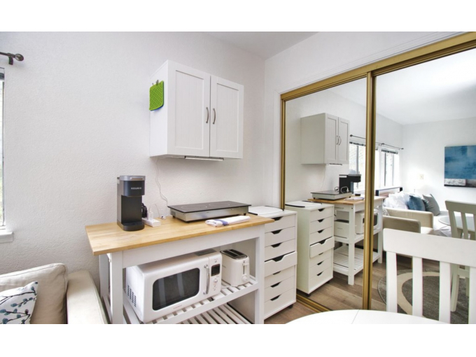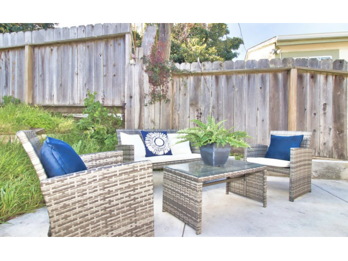 A+ location: Walk 10min to dining & BART train stop to SF. Completely private Queen bedroom, kitchenette, dining/living area and full bathroom. Queen 10" memory foam bed, comforter & 100% cotton spa towels. 2-burner hot plate, microwave, fridge & Keurig coffee make. Comfy & clean--homey amenities!. 55" SmartTV. Laundry + Sunny Patio. 25 min train ride Downtown. Street parking or park at train station 1/2 mile away.